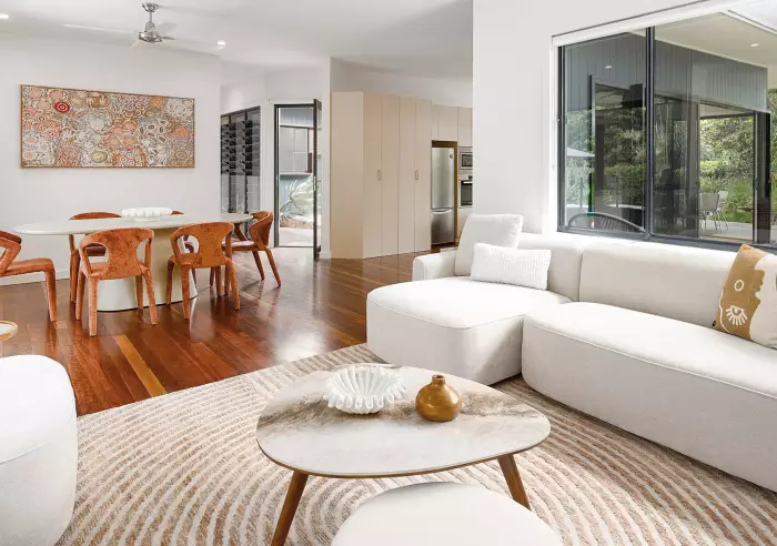 • Spotted gum flooring, hardwood decking, and fresh interior paint