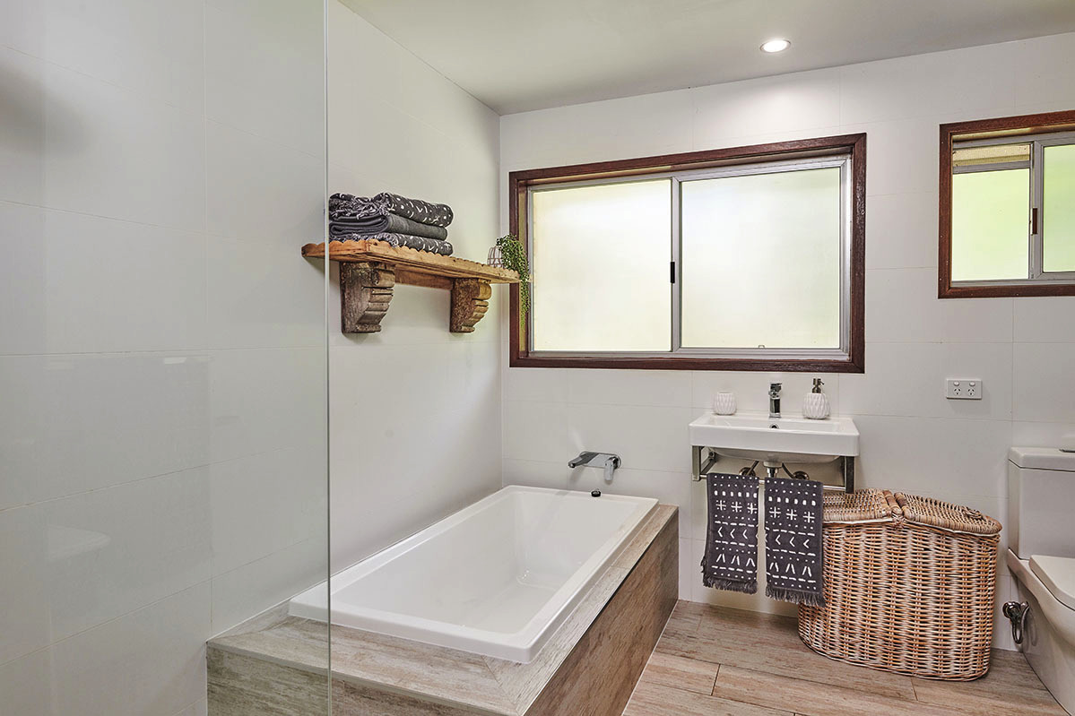 Open plan living, dining and kitchen merge together and flow out on to the back veranda. In the kitchen there are stone benchtops, induction cooktop and an internal laundry. Louvred windows bring in the breezes from the rear of the property. The large family bathroom is stylish with separate bath and shower.